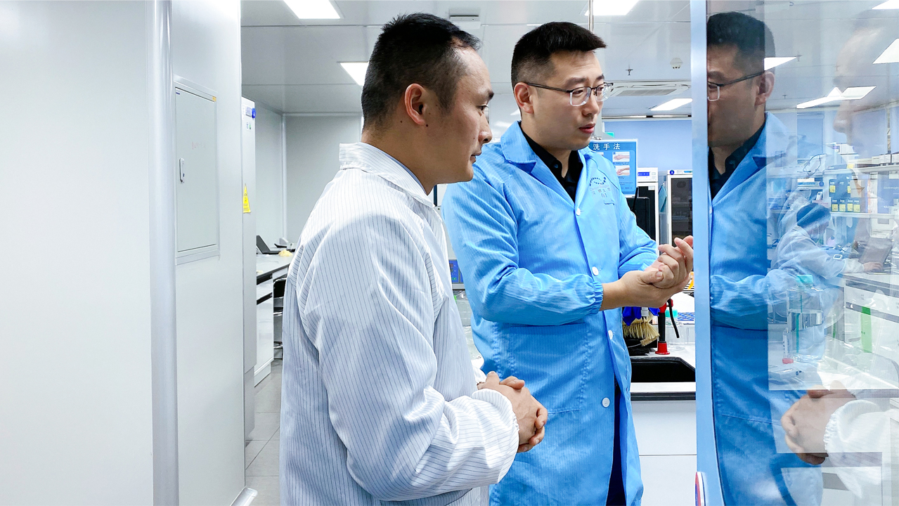 隨后,沈?yàn)t博士與張光南教授一行參觀了廣州伯利恒研發(fā)基地,詳細(xì)講解了CMC開(kāi)發(fā)的各類(lèi)平臺(tái)。其中,沈?yàn)t博士特別提到IgM平臺(tái)(IgMaxTM表達(dá)載體平臺(tái)和IgMasterTM工藝平臺(tái)),我們很早就布局搭建了這個(gè)平臺(tái),去年遇到客戶(hù)需求,我們便能迅速反應(yīng),并將產(chǎn)量做到了業(yè)界最高——8g/L(大部分文獻(xiàn)中IgM產(chǎn)量是低于1g/L)。張光南教授對(duì)漢騰生物的創(chuàng)新發(fā)展表示肯定,并對(duì)沈?yàn)t博士在粵港澳大灣區(qū)生物醫(yī)藥領(lǐng)域所作的努力表示高度的贊揚(yáng)。