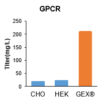 例如,在表達(dá)G 蛋白偶聯(lián)受體 GPCR 的胞外結(jié)構(gòu)域時(shí),GEX® 細(xì)胞系的表達(dá)量相比傳統(tǒng)的 CHO-K1 細(xì)胞系可提升10倍之多。